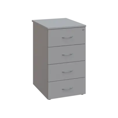 Skříňky z řady AERO lze skvěle kombinovat se stoly tak, aby se vytvořily pracovní prostory v několika výškových rovinách. Pomocí koleček lze vytvářet sestavy dle aktuální potřeby. Pohledová zadní část skříní umožní rozestavění do prostoru. V nábytkové řadě je použito prémiové kování BLUM, s lehkým a tichým chodem, měkkým zavíráním zásuvek, které lze plně vysunout. Dvířka mají bezúchytkové řešení s otevíráním na tip-on, zásuvky mají designové kovové černé úchytky. Dvířka i zásuvky dodávány automaticky se zámkem.