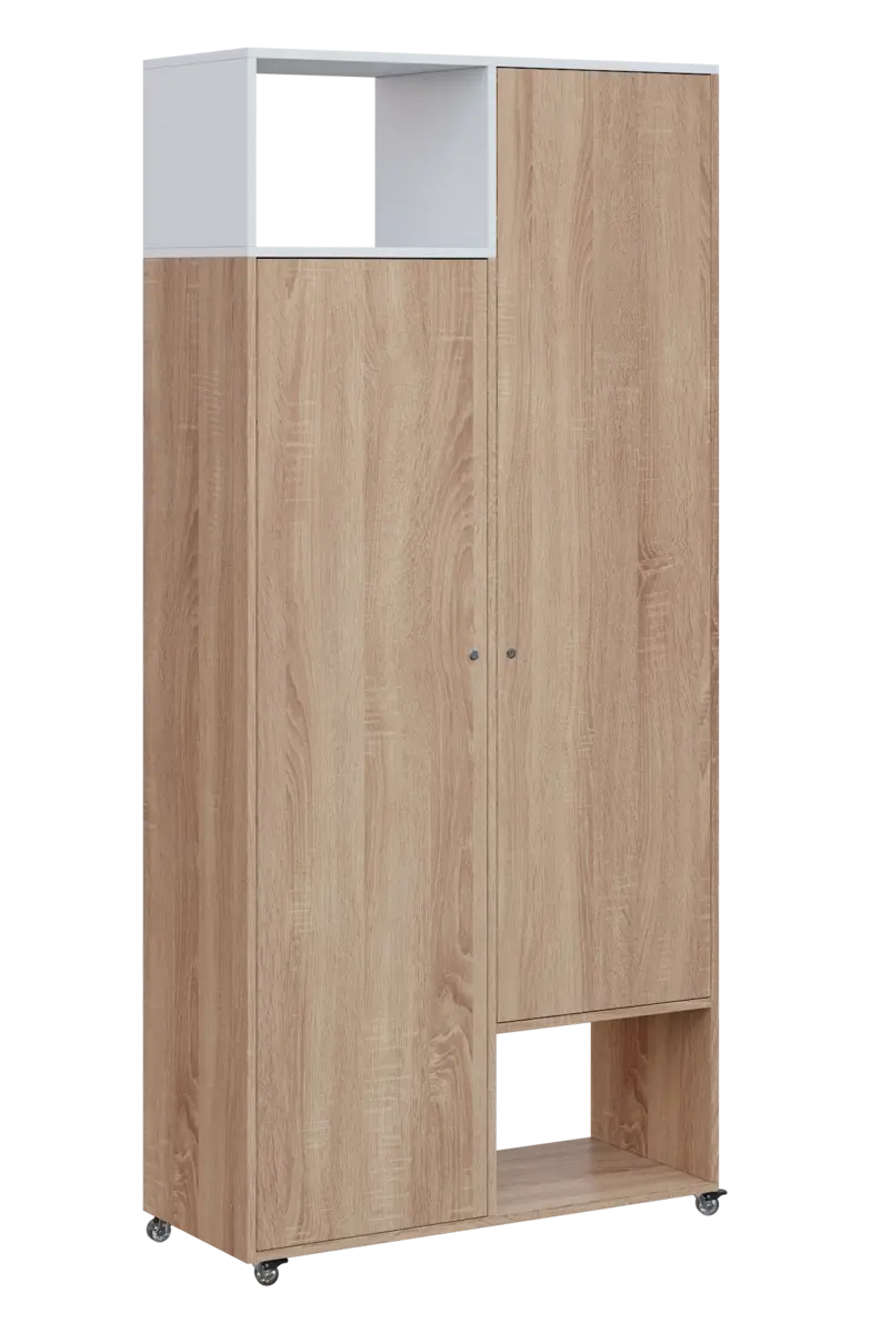 Skříňky z řady AERO lze skvěle kombinovat se stoly tak, aby se vytvořily pracovní prostory v několika výškových rovinách. Pomocí koleček lze vytvářet sestavy dle aktuální potřeby. Pohledová zadní část skříní umožní rozestavění do prostoru.