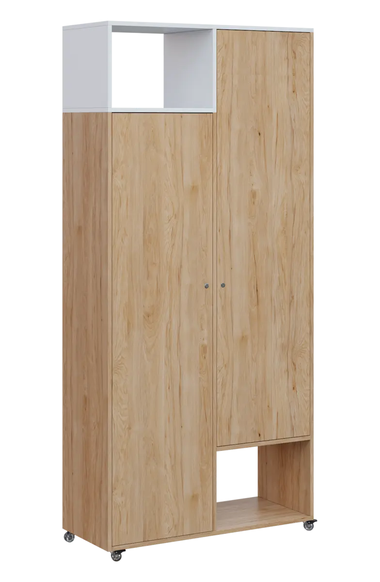 Skříňky z řady AERO lze skvěle kombinovat se stoly tak, aby se vytvořily pracovní prostory v několika výškových rovinách. Pomocí koleček lze vytvářet sestavy dle aktuální potřeby. Pohledová zadní část skříní umožní rozestavění do prostoru.