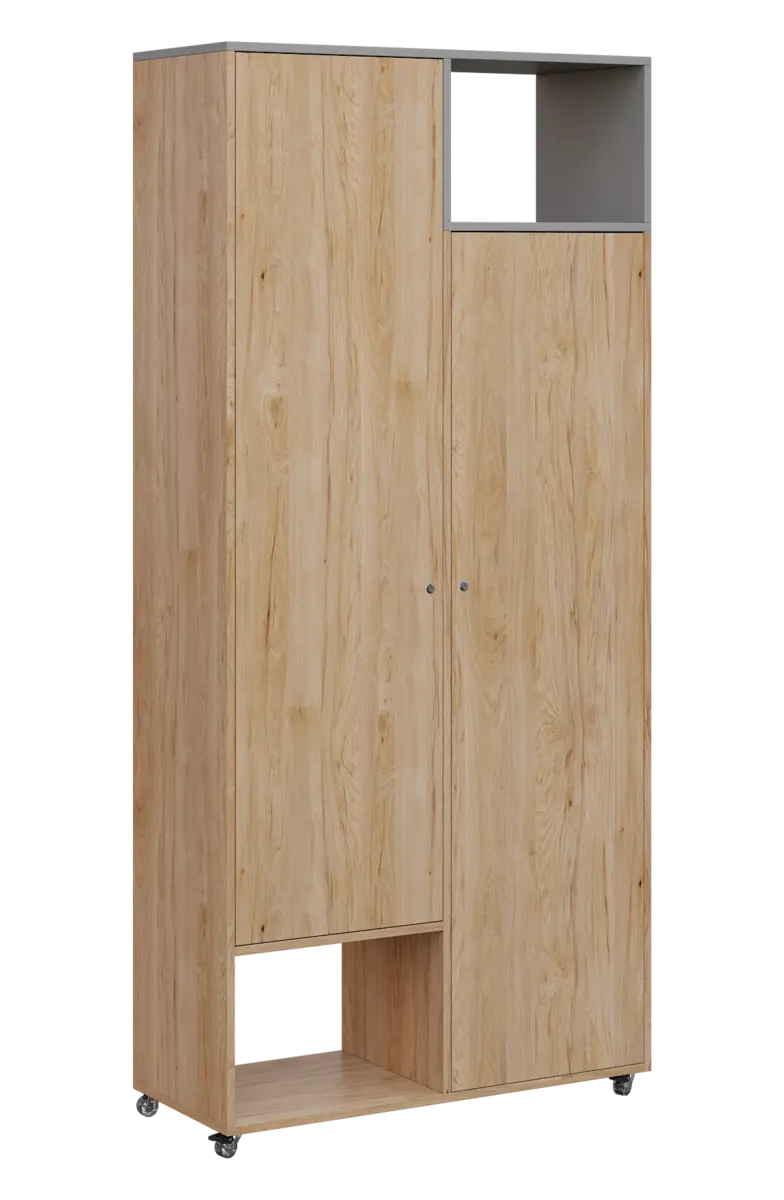 Skříňky z řady AERO lze skvěle kombinovat se stoly tak, aby se vytvořily pracovní prostory v několika výškových rovinách. Pomocí koleček lze vytvářet sestavy dle aktuální potřeby. Pohledová zadní část skříní umožní rozestavění do prostoru.