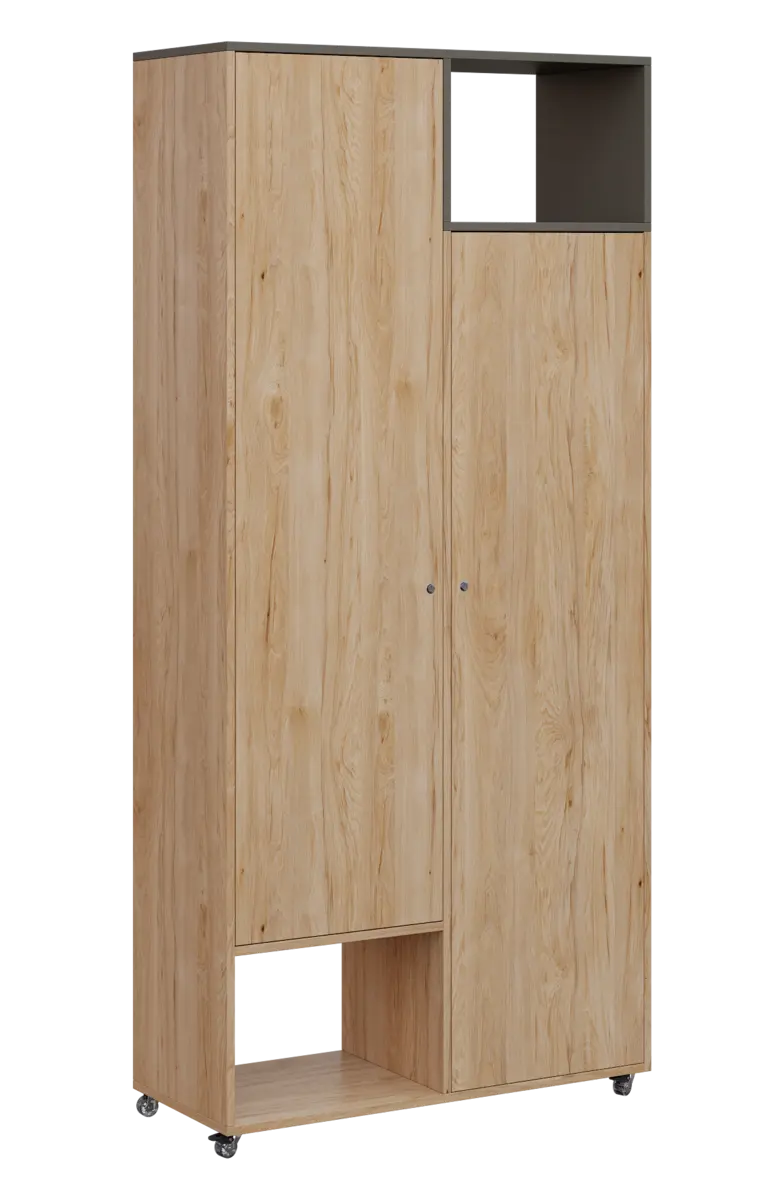 Skříňky z řady AERO lze skvěle kombinovat se stoly tak, aby se vytvořily pracovní prostory v několika výškových rovinách. Pomocí koleček lze vytvářet sestavy dle aktuální potřeby. Pohledová zadní část skříní umožní rozestavění do prostoru.
