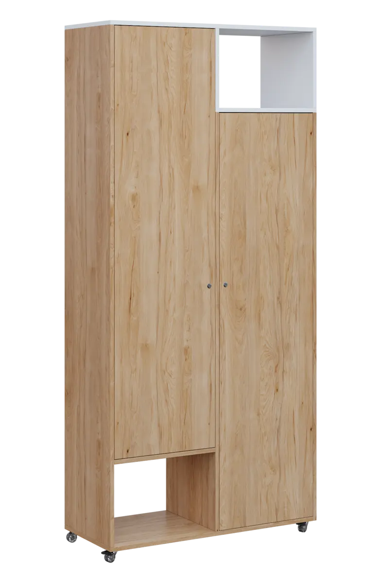 Skříňky z řady AERO lze skvěle kombinovat se stoly tak, aby se vytvořily pracovní prostory v několika výškových rovinách. Pomocí koleček lze vytvářet sestavy dle aktuální potřeby. Pohledová zadní část skříní umožní rozestavění do prostoru.