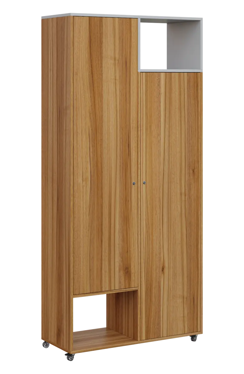 Skříňky z řady AERO lze skvěle kombinovat se stoly tak, aby se vytvořily pracovní prostory v několika výškových rovinách. Pomocí koleček lze vytvářet sestavy dle aktuální potřeby. Pohledová zadní část skříní umožní rozestavění do prostoru.