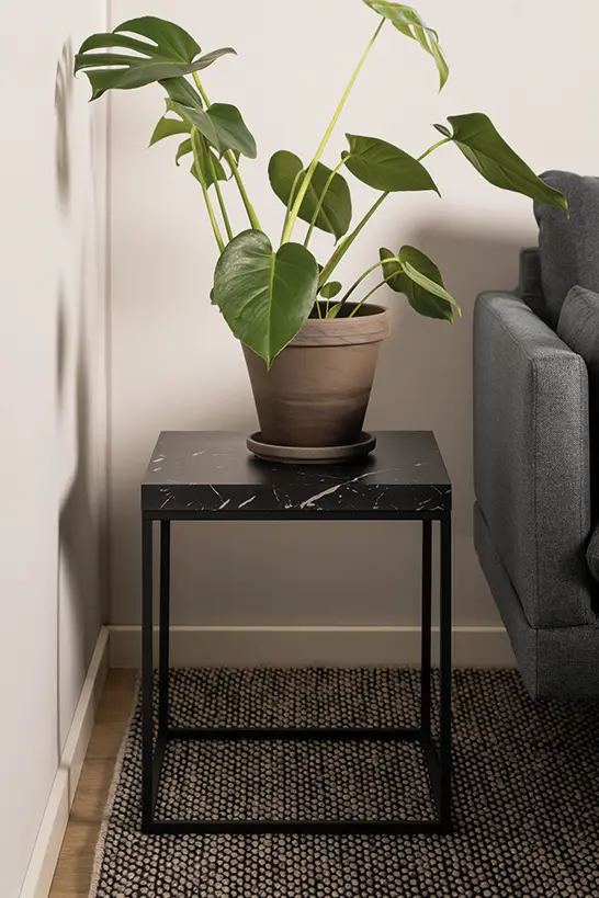 dekor desky módní černý mramor a pevná ocelová konstrukce v černém matném laku