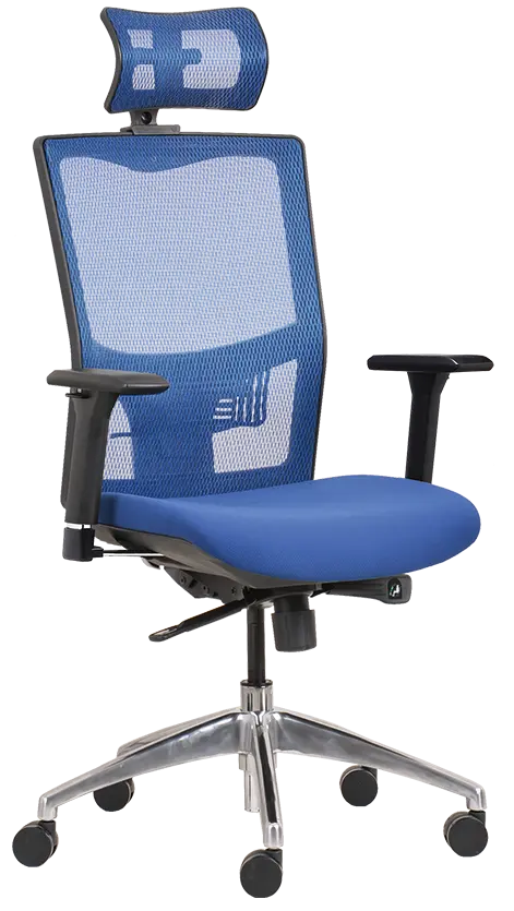 variabilní kancelářská židle s opěrákem a hlavovou opěrkou čalouněnou síťovinou té nejvyšší kvality, sedák čalouněný speciální prošívanou látkou