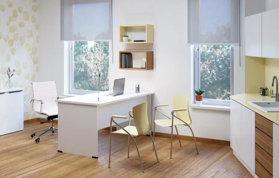 konferenční plastová židle, podnož z ocelových chromovaných profilů, područky