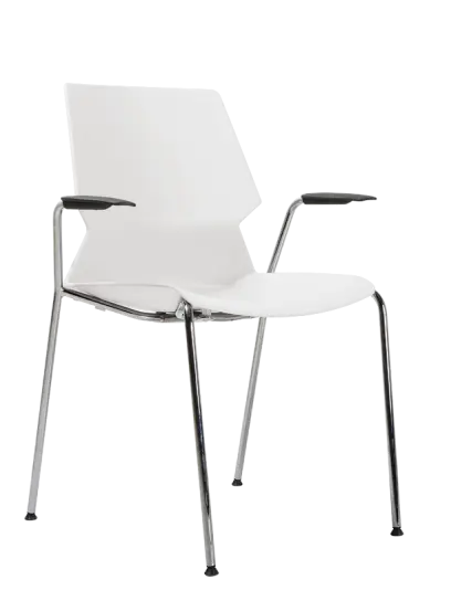konferenční plastová židle, podnož z ocelových chromovaných profilů, područky