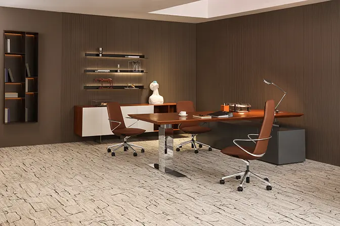 luxusní kancelářské křeslo s vysokým opěrákem, čalounění z jemné kůže té nejvyšší kvality, designový 5-ti ramenný kříž z leštěného hliníku