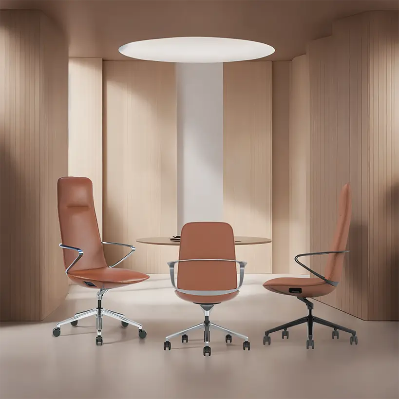 luxusní kancelářské křeslo s vysokým opěrákem, čalounění z jemné kůže té nejvyšší kvality, designový 5-ti ramenný kříž z leštěného hliníku v černém nástřiku