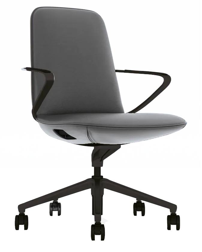 luxusní kancelářské křeslo se středním opěrákem vhodné pro celodenní sezení v kanceláři či v jednacích místnostech, čalounění z jemné kůže té nejvyšší kvality