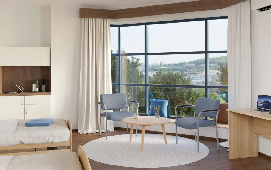 vysokozátěžové bariatrické křeslo, robustní ocelová svařovaná konstrukce navržená na vysoké zatížení, čalouněné kvalitní koženkou