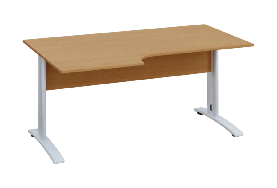 BRK 18 - 164 stůl pracovní, rohový, pravý, kovová podnož stříbrná, deska 18 mm, široký 1600 mm, buk royal