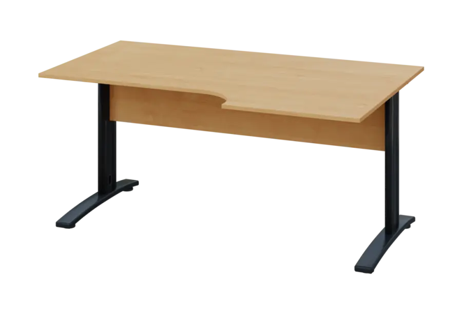 BRK 18 - 166 stůl pracovní, rohový, pravý, kovová podnož černá, deska 18 mm, široký 1600 mm, javor horský