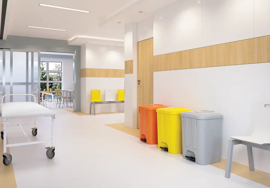 plastové nášlapné koše se zpevněnou konstrukcí otevíracího mechanismu, robustní pedálový systém s velkou životností