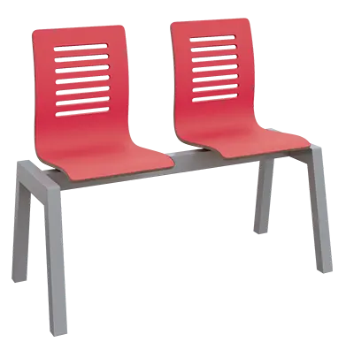 2-místná čekárenská lavice s překližkovými sedáky a svařovanou robustní ocelovou kostrou ve stříbrném laku