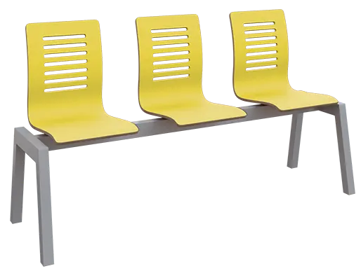 3-místná čekárenská lavice s překližkovými sedáky a svařovanou robustní ocelovou kostrou ve stříbrném laku