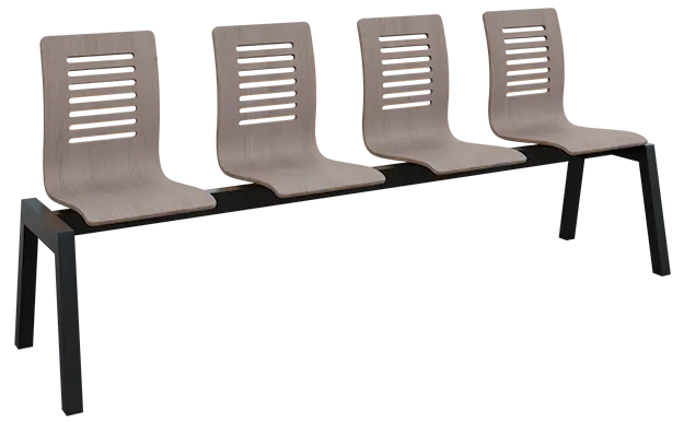 4-místná čekárenská lavice s překližkovými sedáky a svařovanou robustní ocelovou kostrou v černém laku