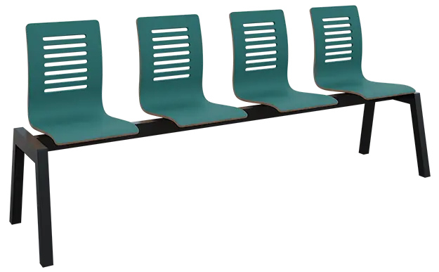 4-místná čekárenská lavice s překližkovými sedáky a svařovanou robustní ocelovou kostrou v černém laku
