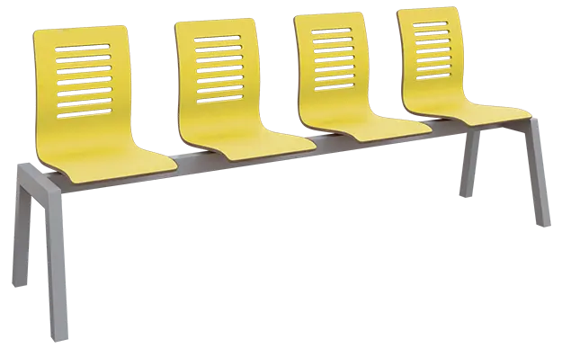 4-místná čekárenská lavice s překližkovými sedáky a svařovanou robustní ocelovou kostrou ve stříbrném laku