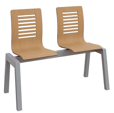 2-místná čekárenská lavice s překližkovými sedáky a svařovanou robustní ocelovou kostrou ve stříbrném laku