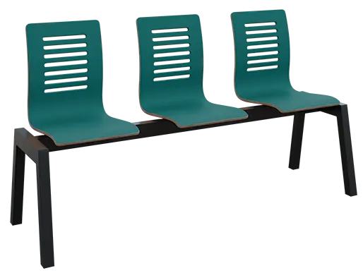 3-místná čekárenská lavice s překližkovými sedáky a svařovanou robustní ocelovou kostrou v černém laku