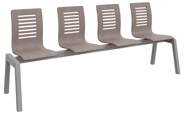 4-místná čekárenská lavice s překližkovými sedáky a svařovanou robustní ocelovou kostrou ve stříbrném laku