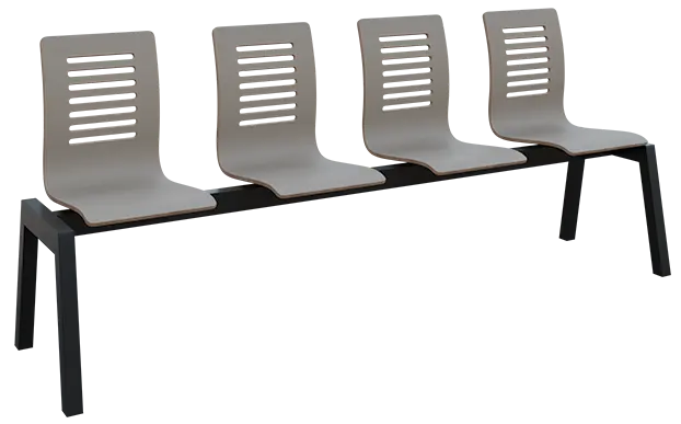 4-místná čekárenská lavice s překližkovými sedáky a svařovanou robustní ocelovou kostrou v černém laku
