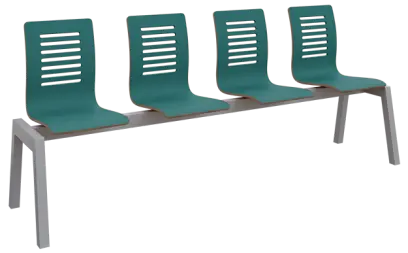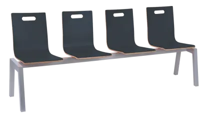 4-místná čekárenská lavice s překližkovými sedáky a svařovanou robustní ocelovou kostrou ve stříbrném laku