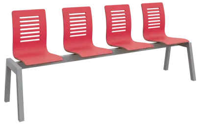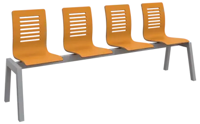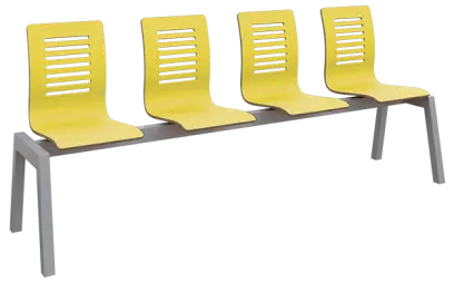 4-místná čekárenská lavice s překližkovými sedáky a svařovanou robustní ocelovou kostrou ve stříbrném laku