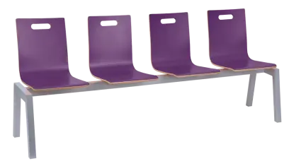 CARMEN 4, dřevěná lavice do čekárny, 4-sedák, purpurová, kostra stříbrná