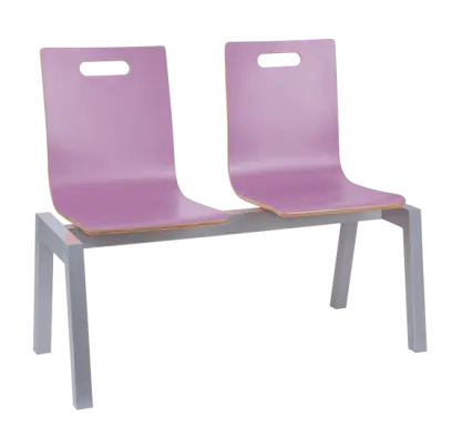 MEGAN 2, dřevěná lavice do čekárny, 2-sedák, šeříková, kostra stříbrná