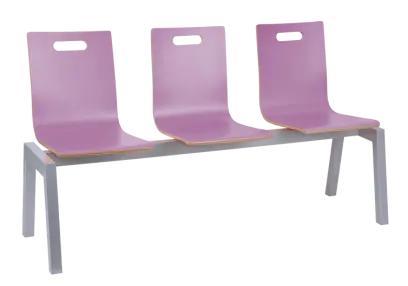 MEGAN 3, dřevěná lavice do čekárny, 3-sedák, šeříková, kostra stříbrná