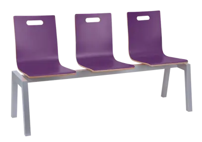 MEGAN 3, dřevěná lavice do čekárny, 3-sedák, fialová, kostra stříbrná