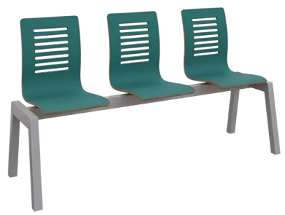 3-místná čekárenská lavice s překližkovými sedáky a svařovanou robustní ocelovou kostrou ve stříbrném laku