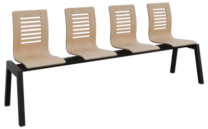 4-místná čekárenská lavice s překližkovými sedáky a svařovanou robustní ocelovou kostrou v černém laku
