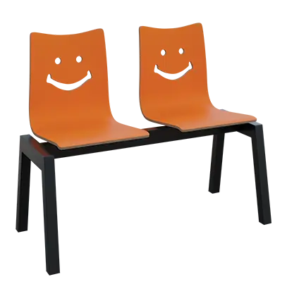 SMILE PLUS 2, dřevěná lavice do čekárny, 2-sedák, oranžová, kostra stříbrná