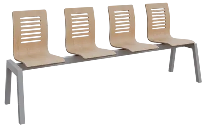 CARMEN PLUS 4, dřevěná lavice do čekárny, 4-sedák, kostra stříbrná