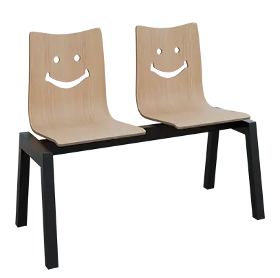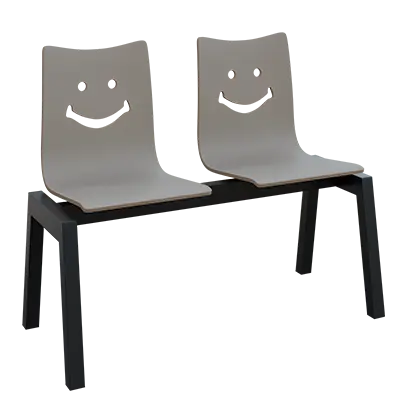 SMILE PLUS 2, dřevěná lavice do čekárny, 2-sedák, šedá, kostra černá