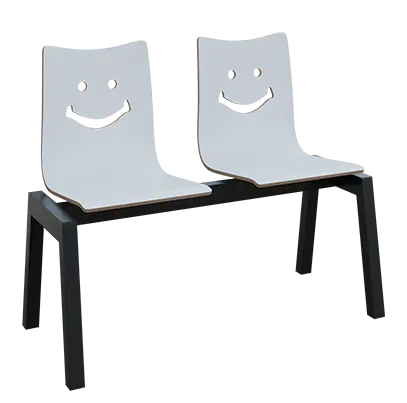 SMILE PLUS 2, dřevěná lavice do čekárny, 2-sedák, bílá, kostra černá