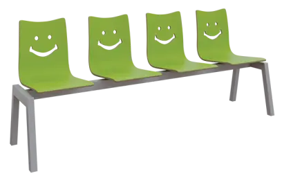 SMILE PLUS 4, dřevěná lavice do čekárny, 4-sedák, zelená, kostra stříbrná