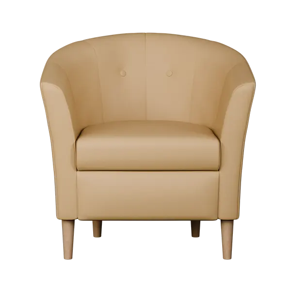 1-místné křeslo v jedinečném designu, ručně prošívaný opěrák s ozdobnými knoflíky, dřevěné masivní nohy v barvě přírodního dřeva