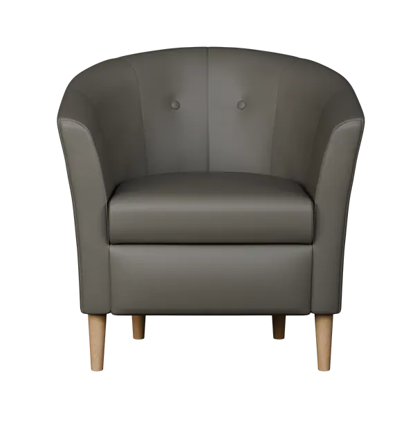 1-místné křeslo v jedinečném designu, ručně prošívaný opěrák s ozdobnými knoflíky, dřevěné masivní nohy v barvě přírodního dřeva