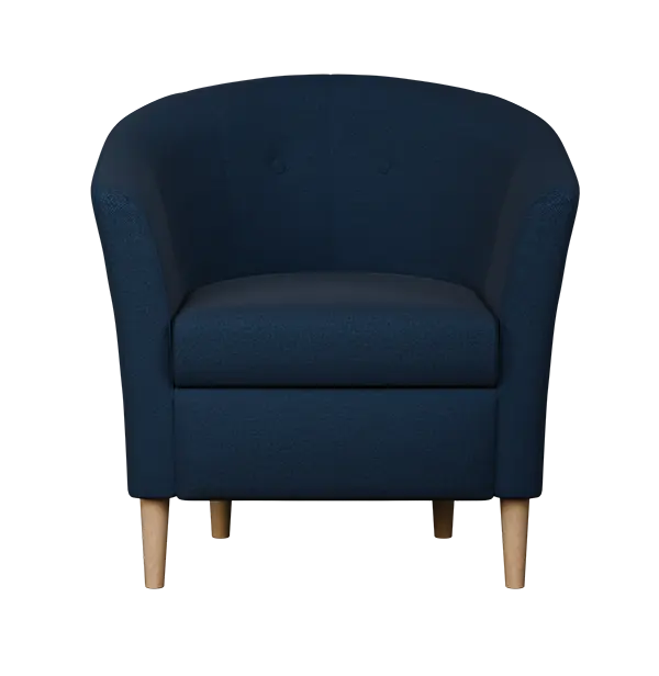 1-místné křeslo v jedinečném designu, ručně prošívaný opěrák s ozdobnými knoflíky, dřevěné masivní nohy v barvě přírodního dřeva