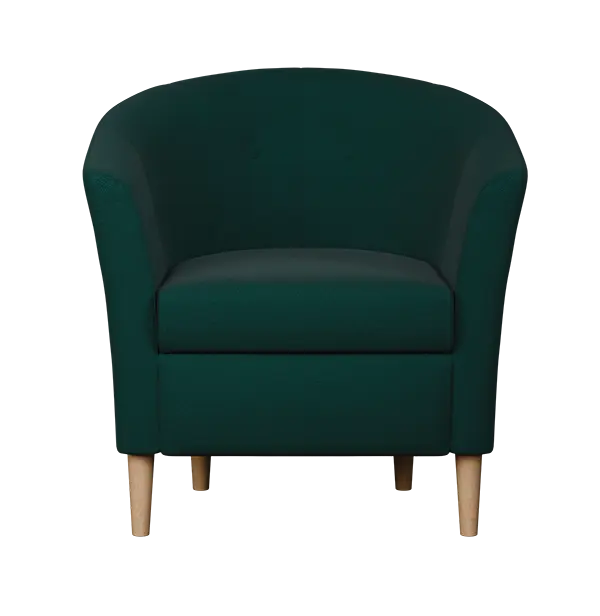 1-místné křeslo v jedinečném designu, ručně prošívaný opěrák s ozdobnými knoflíky, dřevěné masivní nohy v barvě přírodního dřeva