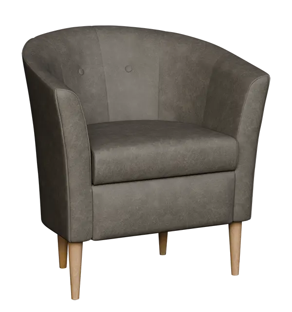 1-místné křeslo v jedinečném designu, zvýšený sed, ručně prošívaný opěrák s ozdobnými knoflíky, dřevěné masivní nohy v barvě přírodního dřeva