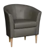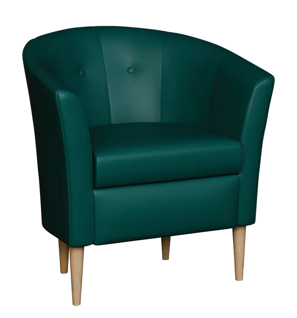 1-místné křeslo v jedinečném designu, zvýšený sed, ručně prošívaný opěrák s ozdobnými knoflíky, dřevěné masivní nohy v barvě přírodního dřeva