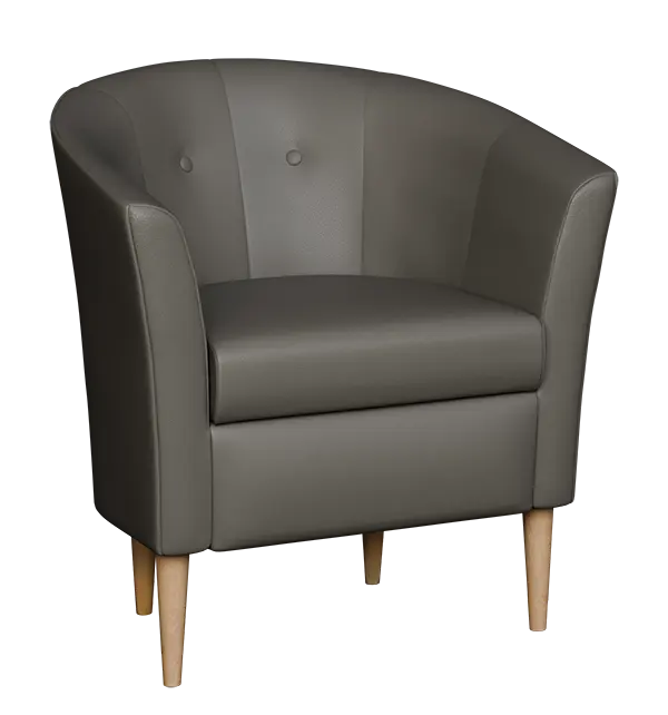 1-místné křeslo v jedinečném designu, zvýšený sed, ručně prošívaný opěrák s ozdobnými knoflíky, dřevěné masivní nohy v barvě přírodního dřeva