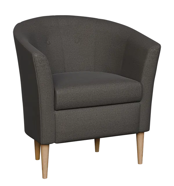 1-místné křeslo v jedinečném designu, zvýšený sed, ručně prošívaný opěrák s ozdobnými knoflíky, dřevěné masivní nohy v barvě přírodního dřeva