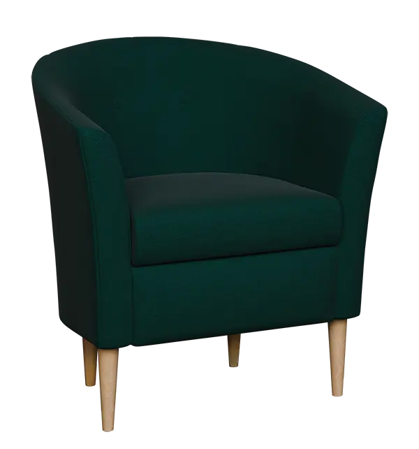1-místné křeslo v jedinečném designu, zvýšený sed, ručně prošívaný opěrák s ozdobnými knoflíky, dřevěné masivní nohy v barvě přírodního dřeva