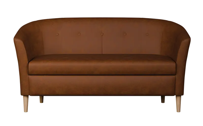 2-místné křeslo v jedinečném designu, ručně prošívaný opěrák s ozdobnými knoflíky, dřevěné masivní nohy v barvě přírodního dřeva